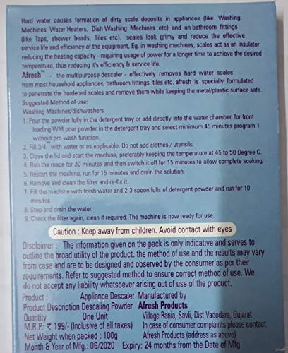 Generic Descaler Powder Suitable for Samsung Washing Machine afresh Appliance Descale 100 Grams (Pack of 2) (Universal kit for All Types of Washing Machine)(Match & Buy }