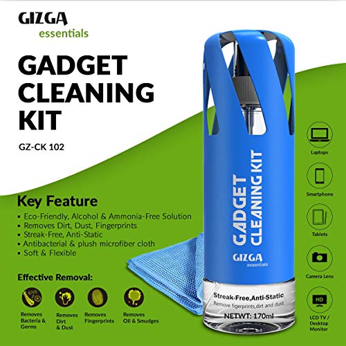 Gizga Essentials Professional Cleaning Kit for Mobile, Laptops, Cameras and Sensitive Electronics (Includes: Plush Micro-Fiber Cloth, 170ML Antibacterial Cleaning Solution)