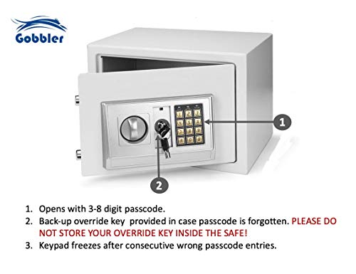 LED KEYPAD- The safe is protected with an LED lit keypad that can be programmed with master and guest codes 3-8 digits long. Equipped with 2 manual override keys, you will never have to worry about getting locked out of your safe if you forget the code.