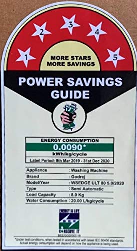 Energy Rating: 5 Star energy – Best in class efficiency