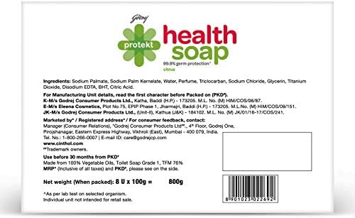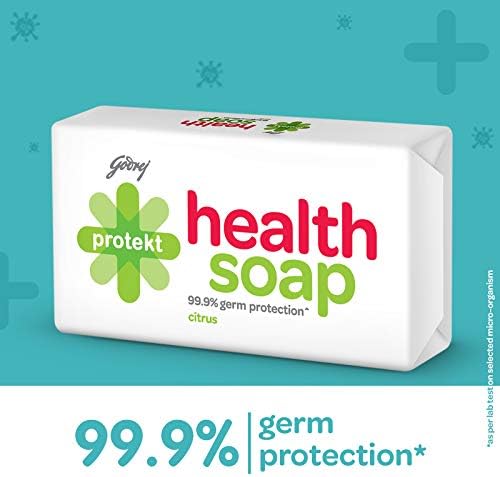 Godrej Protekt Health Bath Soap, Anti-bacterial with 99.9% Germ Protection – Citrus Fragrance, Pack of 8 (100g each)
