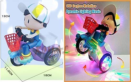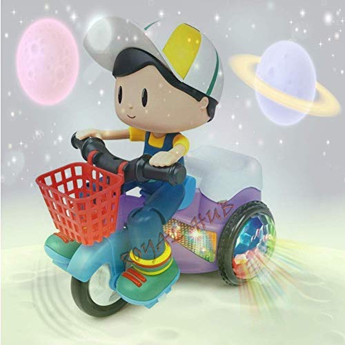 Golden Ocean® Light and Sound Musical Stunt Bike Tricycle Bump and Go Scooter Toy – 4D Flashing Light Effects and Music Stunt Motorcycle with 4D Lights, 360 Rotation Movement
