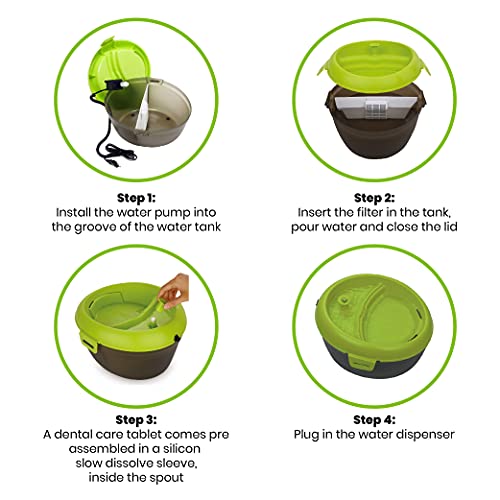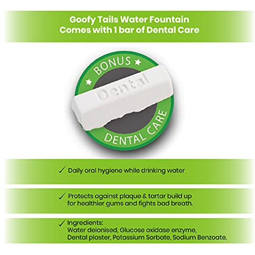 Goofy Tails Dog Water Fountain 2 Litre | Automatic Dog Water Dispenser + Dental Care Tablet + Carbon Filter Pad for (Puppies & Small Breed Dogs)