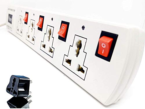 - This adapter has 4 power plugs with 4 individual switches on the top corner. It has 4 nos of 3 pin universal plug on the front of electrical input.