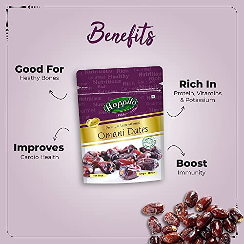 Happilo Premium International Omani Dates 250 g| Khajoor or Khajur Dry Fruit | Healthy & Nutritious Snack | Rich in Vitamins & Minerals | Natural Sweetener