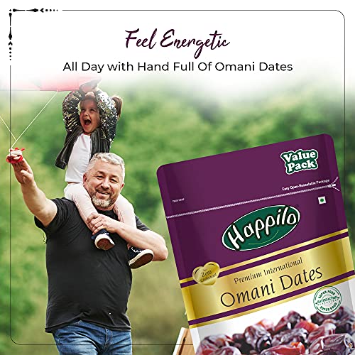 Happilo omani dates, also known as khajoor, are one of worlds most delicious farm fresh dates. Omani dates have the hidden quality of boosting energy instantly! Hence they are not just apt during festive season, but are also a must-have snack for the entire year. It is superfood for super energy levels. Our products are packed under highest level of hygiene, retaining all the goodness of nature.
