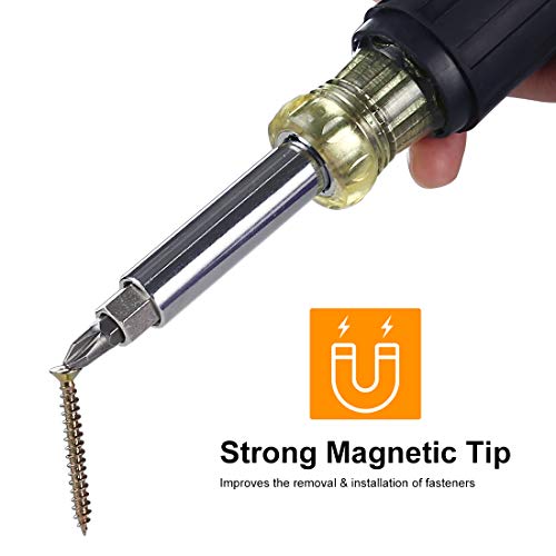HARVET 8 in 1 Multifunction Screwdriver Industrial Strength Bits, Cushion Grip Handle
