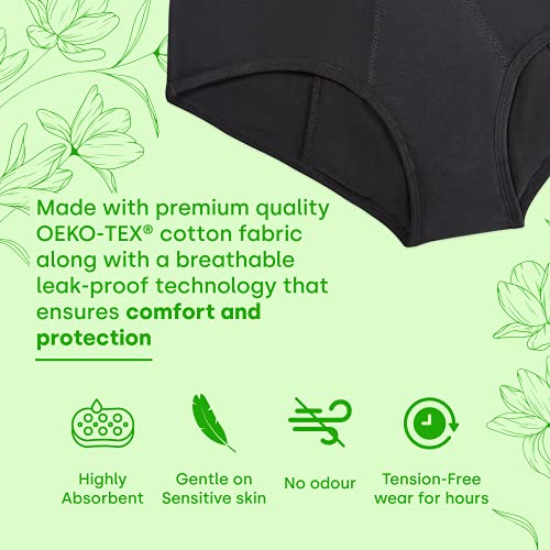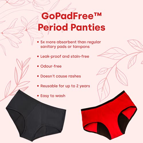 Healthfab Gopadfree Reusable Leak Proof Period Panty Usable for 2 years without pads,tampons and menstrual cup,made up of premium organic fabric (Black, XL(37 inch to 40 inch))