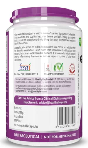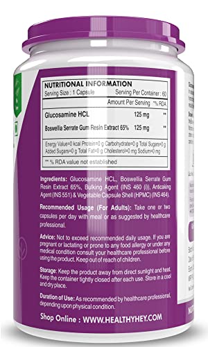 HealthyHey Nutrition Glucosamine HCL + Boswellia – Support Joint Health – 250mg – 60 capsules (Pack of 1)