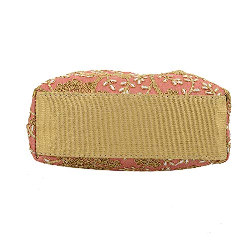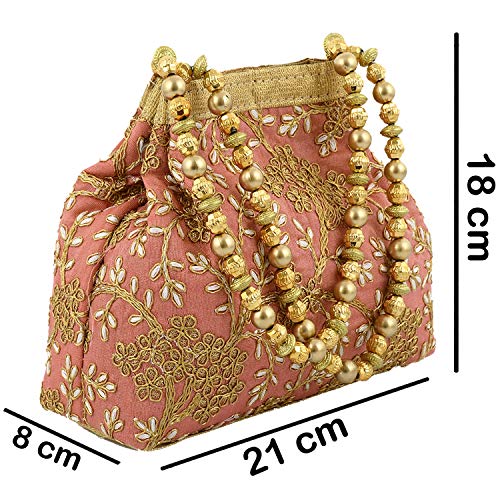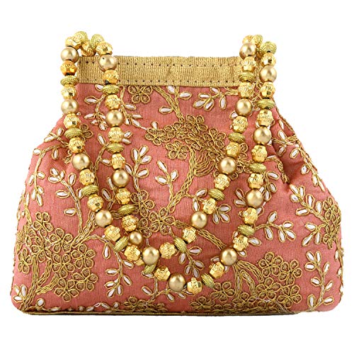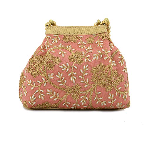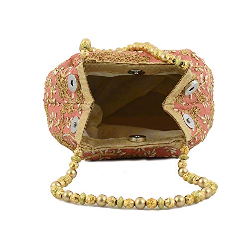 Heart Home Polyester Embroidered Potli Batwa Pouch Bag for Women (Peach) HEART2870