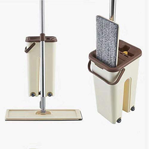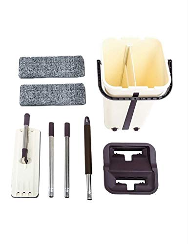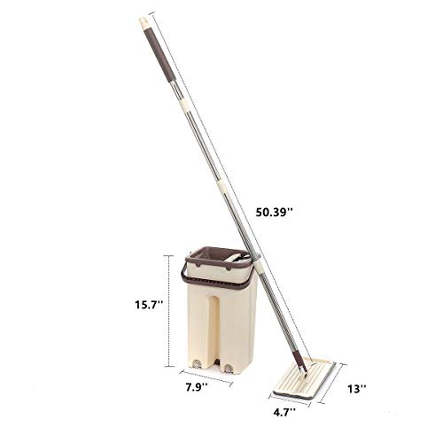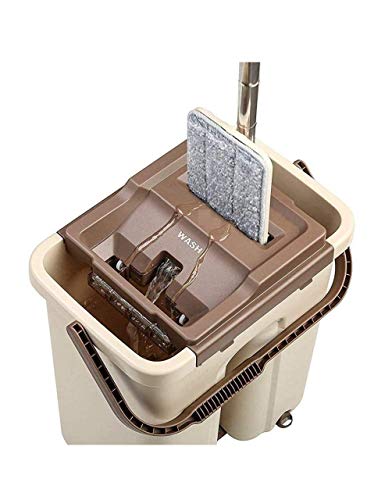 🧹【Microfiber pad】Microfiber pad easy to soak up liquids & pick up dust, dirt, debris & hair. Machine washable. As the microfiber pad can adsorb limited dirty and bucket has limited water capacity, if the floor is too dirty or big rea, we suggest previously clean the floor with broom(not included), or wash and dry the mop pad more times and replace the water of bucket in time. The mop pad need be washed clean and dry before mopping on the floor, otherwise it may leave floor dirty.