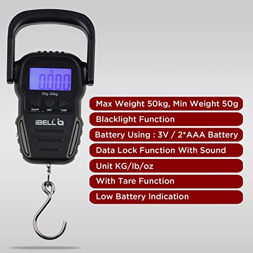 iBELL 50Kg Electronic Portable Luggage/Fishing Weighing Scale Hook Type with Digital LED Screen / Tape & Tare Function