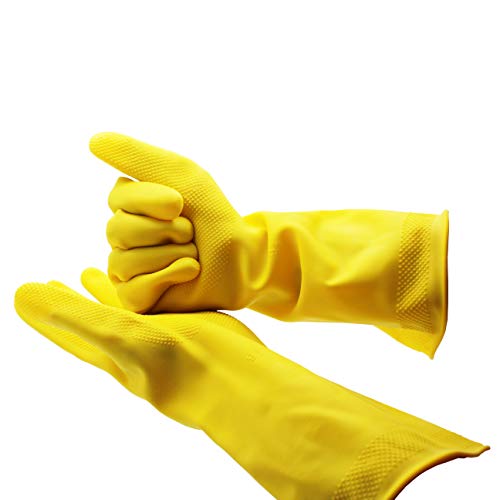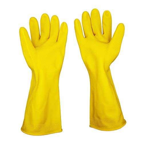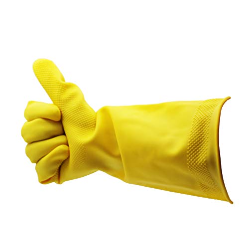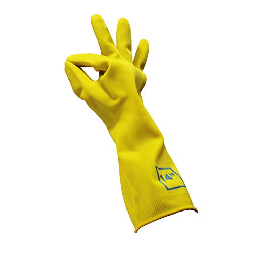 iLife Chemical Resistant Latex Rubber Gloves,Heavy Duty Work Industrial Glove for Lab, Safety & Construction Job – 1 Pair Standard 14″ Reusable set. Yellow