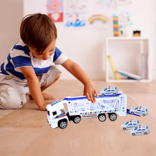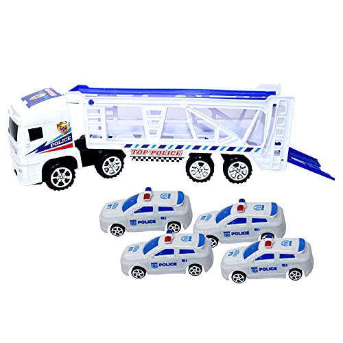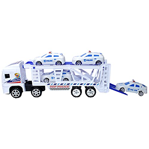INAAYA Police Parking Transporter Truck with 4 Mini Police Vehicles Birthday Reward for Boys (Multicolor)
