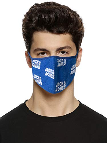 Jack & Jones Men’s Cotton Reusable 3 Layer Protective Fashion Cloth Mask (Pack of 3) (12187802_Surf The Web _1 Count (Pack of 1))