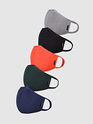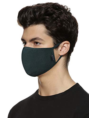 Jack & Jones Men’s Cotton Reusable 3 Layer Protective Fashion Cloth Mask (Pack of 5) (214399501_Darkest Spruce_One Size)