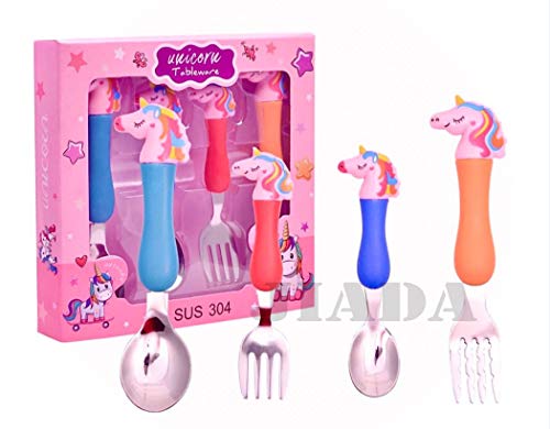 Jiada Unicorn Stainless Steel Baby Feeding Spoon and Fork Cutlery Set for Kids (Multicolour)