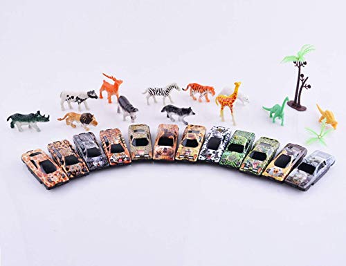 JK 12 Pieces Vehicles Forest Racing Cars with Animal Models Toy for Kids | Pocket Car Set | Car Gift Pack of 12 | Small Size Animal Pack of 12