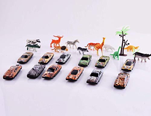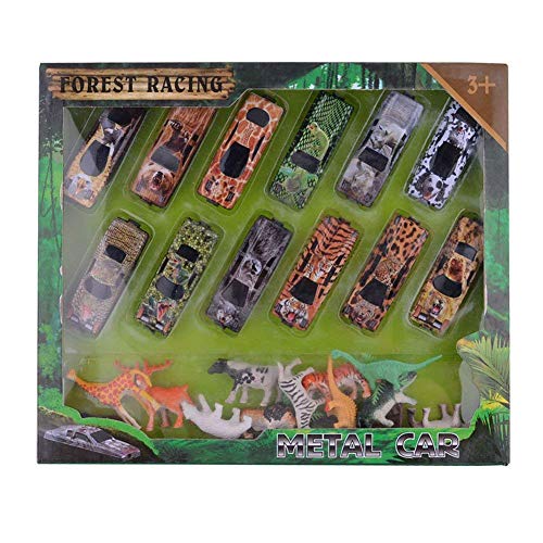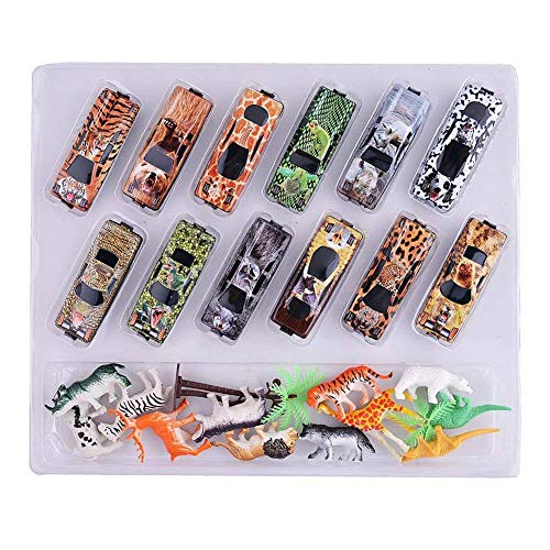🚕Includes a combination of 12pcs forest racing car models and 12pcs animal models.