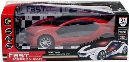 Super model high speed remote control car toy(Battery operated) with Lights And forward, backward buttons for kids, multi featured remote with forward and backward buttons and also has right, left turn and Stop functionality.