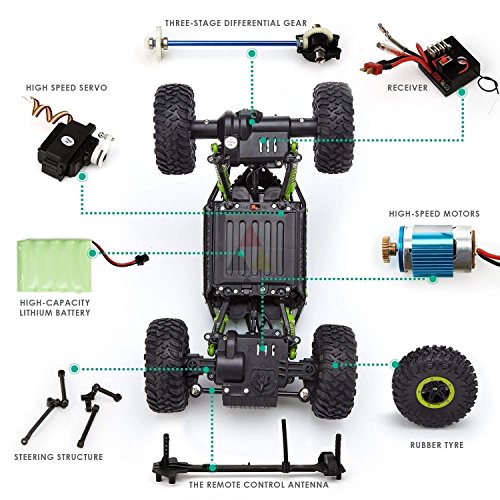 Amazing crawling technology and strong shocks makes it easy to use on rugged roads or off road and climbing over pebbles and large stones without affecting its performance. Rechargeable batteries for the car and charger are included. 24ghz remote control rock crawler, rc monster truck 4wd, off road vehicle. Oversize tires makes it easy to use in mud, shallow water, grass, paving or off road.
