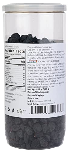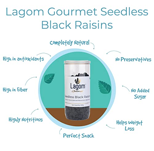 Lagom Gourmet Seedless Black Raisins, 500g | All Natural | No Preservatives | No Added Sugar | Gluten Free | Vegan | Non GMO | Raisins Dry Fruit