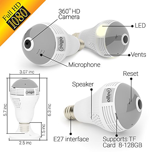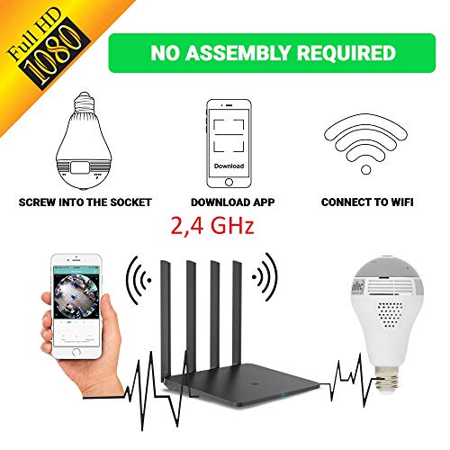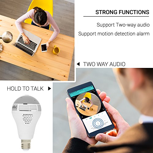 FAST, EASY AND SIMPLE WI-FI CONNECTIVITY: Connecting this panoramic camera to your phone via a wi-fi network is very simple and straightforward. Bulb camera also has an easy to use Graphical Interface that lets you perform actions remotely. You can baby monitor camera in real-time, playback video, and activate alarm with absolute ease.