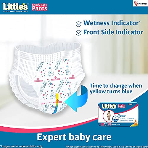 Little’s Baby Pants Diapers with Wetness Indicator and 12 Hours Absorption, Large (L), 9-14 kg, 60 Count