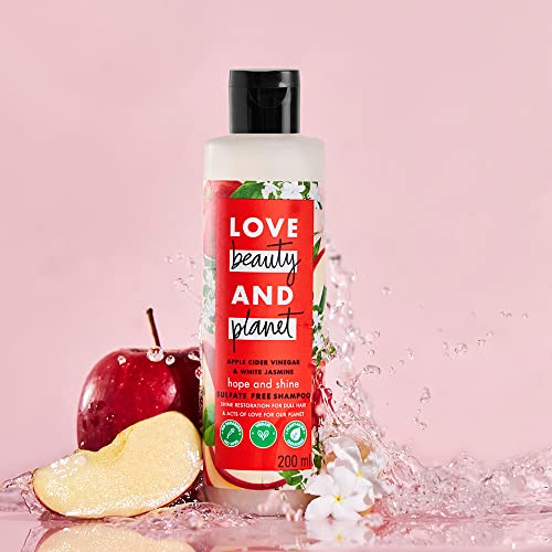 Love Beauty & Planet Apple Cider Vinegar & Jasmine Sulfate Free Shine Shampoo, 200ml