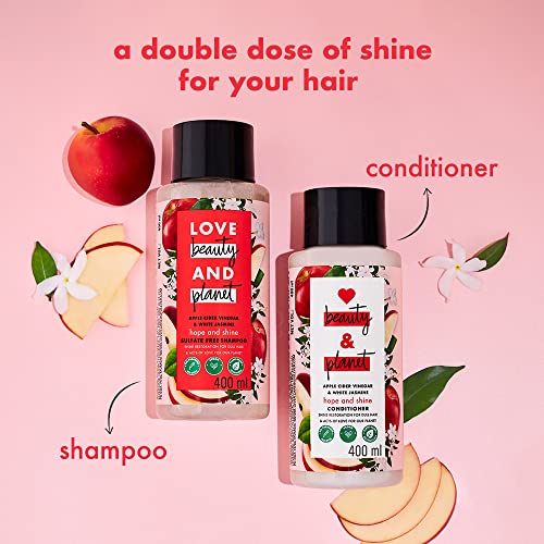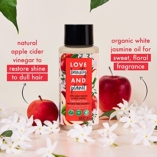 SHINE FOR DULL HAIR Love Beauty & Planet apple cider vinegar and jasmine shampoo restores shine to dull, damaged hair while smoothening the dry ends for healthy, happy hair