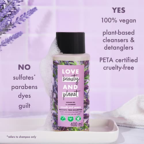 100% SMOOTHER, FRIZZ-FREE HAIR Love Beauty & Planet Argan Oil and Lavender shampoo leaves the hair feeling 100% smoother and controls frizz for healthy, happy hair
