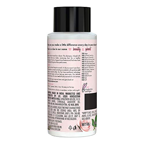 Love Beauty & Planet Vibrant Shine Shampoo, With Natural Murumuru Butter and Rose for Colored, Dry & Damaged Hair, No Parabens, No Silicones, 400 ml