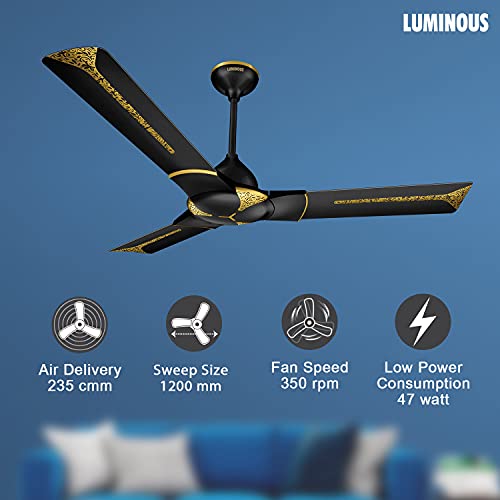 Luminous Jaipur Ghoomar 1200mm Designer Ceiling Fan for Home and Office with BEE 3-Star Rating and 40% Energy Saving (Abu Black), Pack of 1 (F05JAIGHOABL)