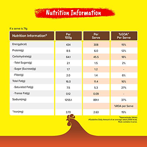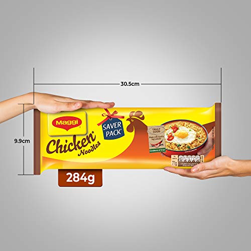 Hosteller, home alone or hungry in the middle of the night? Worry not, for you always have Maggi chicken noodles. A fun and flavorful snack, this product from Maggi is popular with consumers of all ages. Forget about complex cooking and long waits; with Maggi instant noodles, you can have a tasty treat in only 2 minutes. Each pack of Maggi noodles contains 4 noodle cakes and 4 tastemaker sachets inside. To get a nice and warm bowl of noodles, just follow the instructions on the pack. You can also bring your creative culinary skills into play by customizing the snack to your own taste. A convenient product, these chicken noodles are a sumptuous choice for those hangouts and surprise visits from friends. Rest assured – Your guests will lick their bowls clean, and so will you!