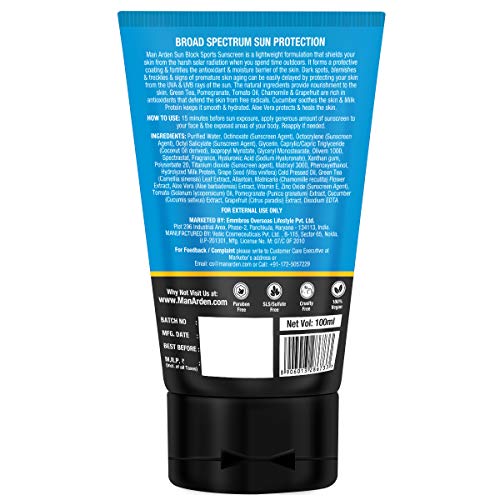 Man Arden Sunblock Sport Sunscreen SPF 50, Non Greasy & Water Resistant, 100ml – UVA & UVB Protection