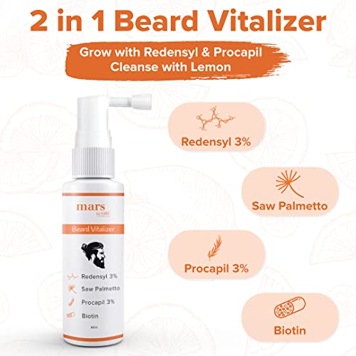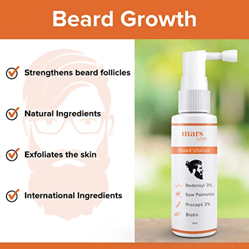 mars by GHC Beard Growth Vitalizer Combo, Beard Growth Vitalizer (60 ml), Beard Comb, Powered With Redensyl With Wooden Neem Beard Comb For Beard Shape | Paraben, SLS & Sulphate Free (Set of 2)