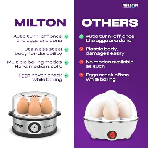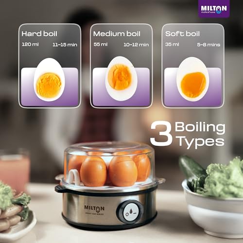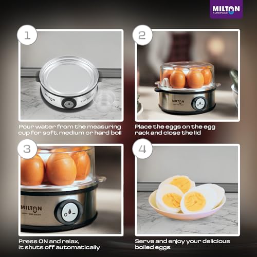 ▶DURABLE STAINLESS STEEL BODY & HEATING PLATE : Crafted with a stainless steel body and flat heating plate, this egg boiler is built to last. The robust design ensures durability and resistance to rust, while the flat heating plate guarantees faster and more efficient boiling. Whether you are using it as a electric egg boiler for your morning routine or as a multipurpose solution for boiling eggs for salads or snacks, the Milton Smart Instant Egg Boiler provides reliable performance.