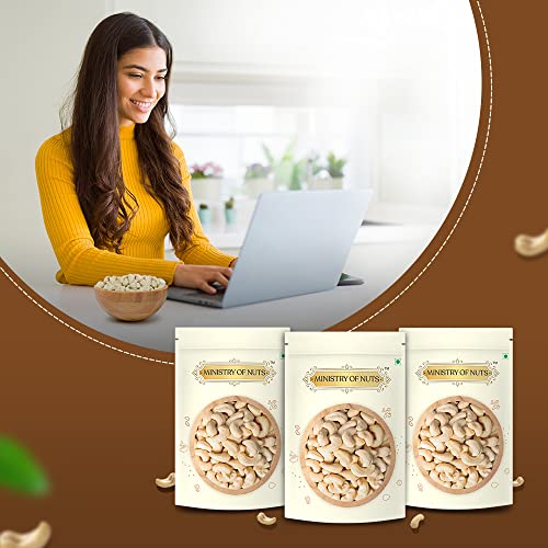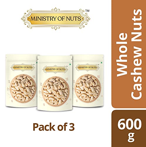 Ministry Of Nuts Special Pack of 3 Whole Cashew Nuts Premium Kaju 200g each Total 600g – All Natural, Good Source of Protein & Dietary Fibres, Zero Cholesterol & Transfat