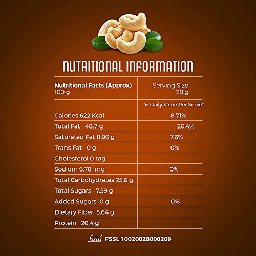 Cashew nut is a highly nutritious and concentrated form of food, providing a substantial amount of energy. Whole Cashew Nuts are rich in fiber, zinc, and magnesium. Provides a good quantity of monounsaturated fats.