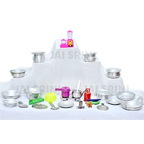 Bring real time cooking experience with natural atmosphere and without any kind of harm. It teaches kids to cook like mom and dad in the kitchen. This Miniature Kitchen Set provide real-time cooking experience with first class quality and furnish more excitement with joy to the kids while comparing to play with other toys. They will also decorate your showcase as showpiece with traditional look at product. Tiny Kitchen Set for Cooking Real Food. Setting up a kitchen and playing with it has always been a favorite activity for little girls or boys too. This awesome kitchen set is bound to make your little kid happy. Watch your little kid get involved and enjoy playing with this delightful set along with her friends. Made of high quality durable Aluminium. Develops creativity and sensory skills, it includes lot of pretend kitchen equipment. Let your little kid transform into a super master chef by playing with this amazing kitchen set.