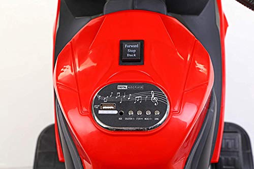 SPECS 2: MP3 music input via an USB / SD card ports, start button with raving sound, soft start movement, Horn and a digital power display – kids will love it