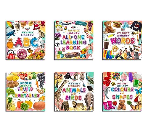 My First Library – Boxset of 6 Early learning Books for Kids – Alphabets, Animals, Birds, Words, Fruits, Vegetables, Colours, Shapes and All in One