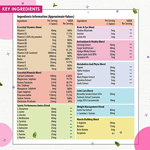 Supports Stamina, Alertness, Focus & Immunity: Naturyz multivitamin tablet for women contains well researched vitamins and minerals to support stamina, alertness, focus & boost immunity