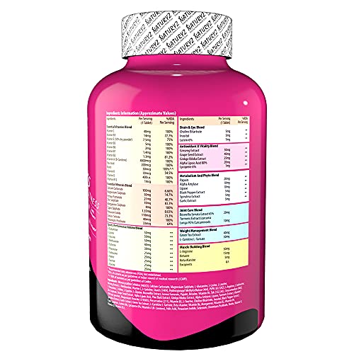 55 Nutrients in Each tablet: Naturyz multivitamin tablets for women provides 13 vitamins, 9 minerals, and 10 natural extracts along with antioxidants to ensure women get all the required nutrients everyday