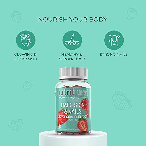 NUTRIBURST Hair, Skin & Nail | UKs Most Trusted Brand| Biotin Hair Gummies | For Healthy Skin, Hair & Nails | VEGAN AND SUGAR-FREE M | Delicious Strawberry flavored Gummies |Pack of 60 (Pack of 2)