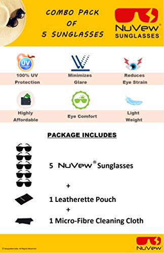 NuVew Unisex Adult Aviator Sunglasses With Pouch(Pack of 5)
