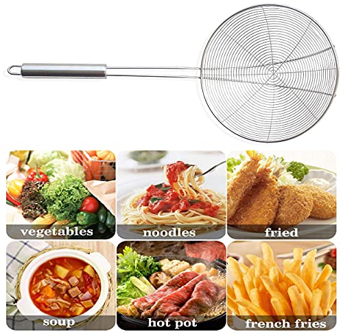 This kitchen strainer has quite fine mesh design to prevent the emerging of grease and bubble, which will impact the taste of food. Different purposes, ideal for straining quinoa, juice, tea, pastas, jams, sifting flour, sugar, soup and more. With double hook design for you to hang on anywhere that is suitable to reduce friction, causing less wears. This filter is made of stainless steel, which receives the high temperature on long time basis, without easily deformation. With long and thin handles, this filter has aesthetic taste to make it be good-looking in appearance, as well decreasing hot evaporation. The double ears design on the filter is for it to hang on the pot to drain oil or residues thoroughly, human hands are freed from holding it so long. Matched with other kitchenware to make cooking be easier, establishing a better life and healthier diet.