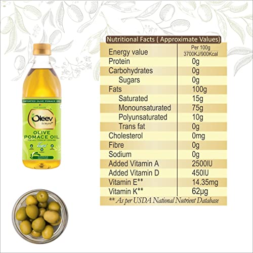 Oleev Olive Pomace Oil for Everyday Cooking, 1L PET Bottle