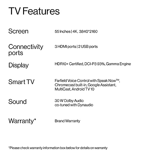 Smart TV Features : Android TV 10 |Hands-free voice control with Speak Now | Google Assistant | OnePlus Connect 2.0 | OxygenPlay 2.0 | Data Saver Plus | Kids Mode | Game Mode