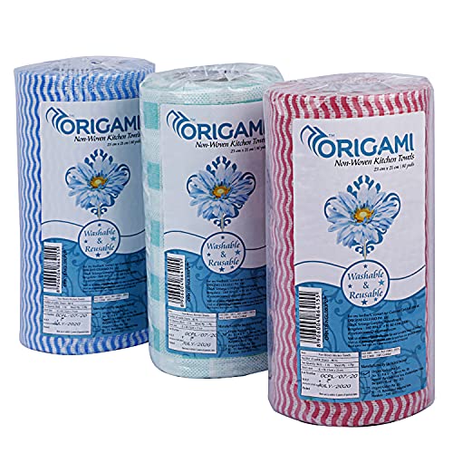 Origami NonWoven Reusable and Washable Kitchen Wipes – 3 Rolls – 80 Wipes per roll – Total 240 Wipes